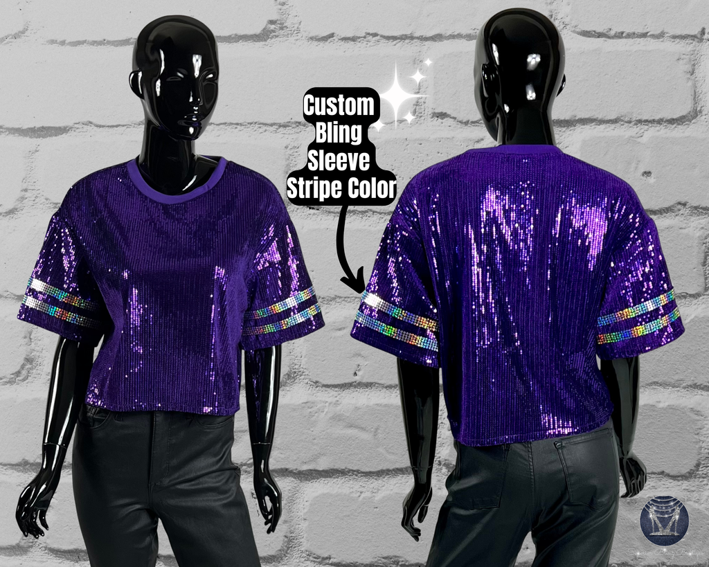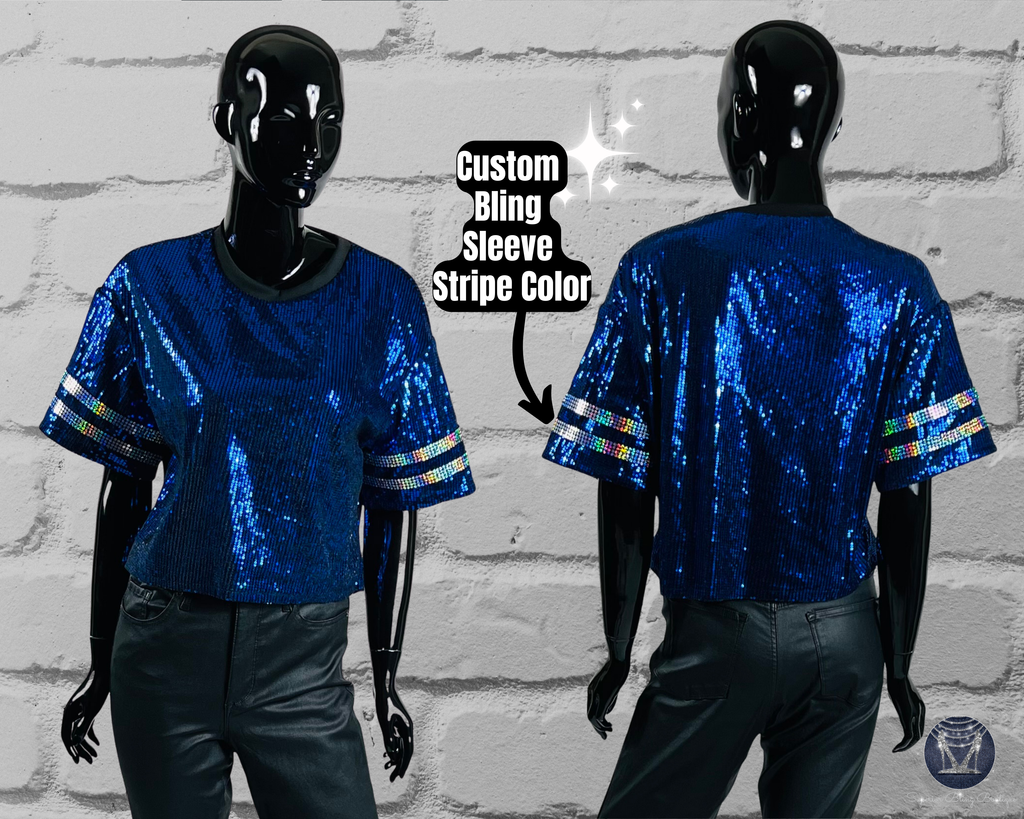 - Sequin Short Sleeves with custom bling stripes (optional)