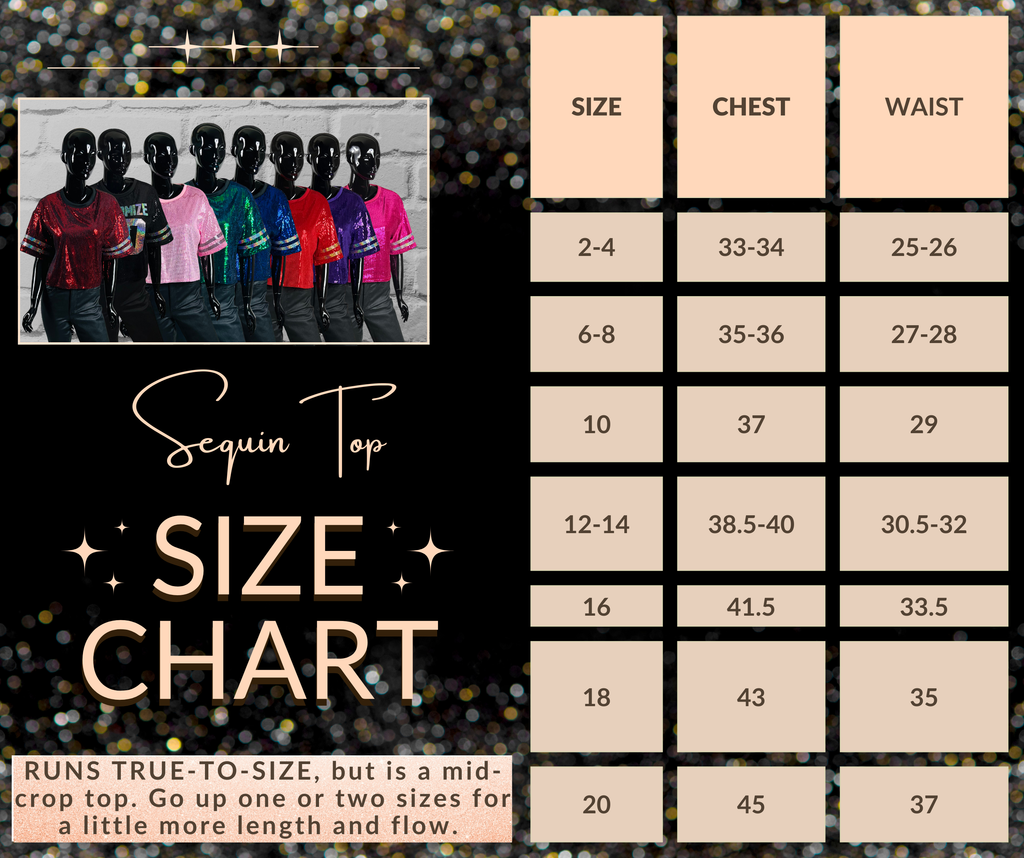 - Sequin Top Back: Customize with your name/text and number(s) ***Optional