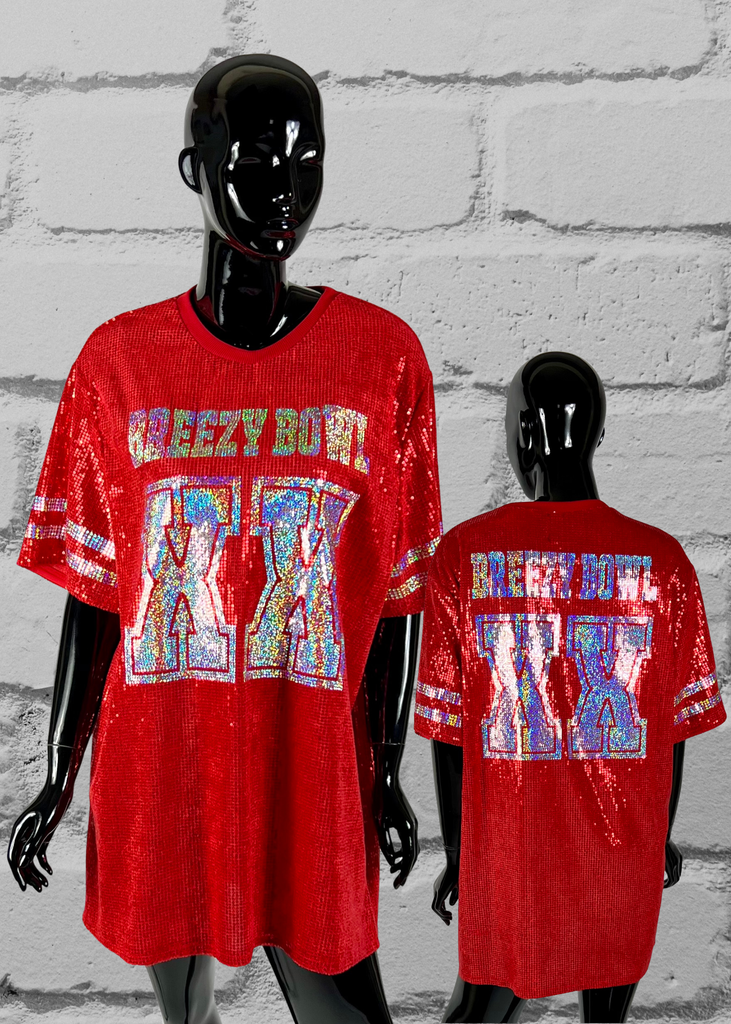 Red Custom Sequin Tunic Shirt Dress, Football Bling, Cheer Bling, Birthday Bling, Sports Bling, Custom Name and Number